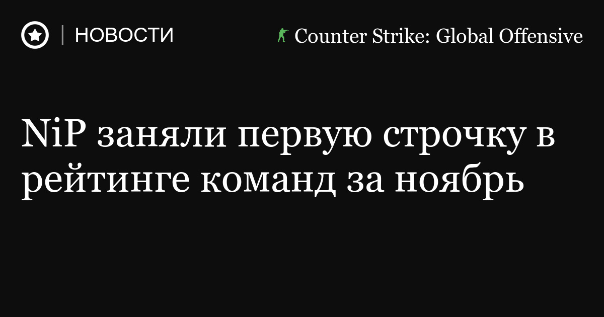 Коллектив по Counter-Strike: Global Offensive из Швеции Ninjas in Pyjamas заняли первую строчку в рейтинге команд за ноябрь 2016 года, составленный порталом HLTV.org.